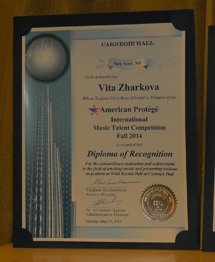 In 2014 and 2017 Violetta's students were winners of American Protégé International Music Talent Competition. In 2016 three of Violetta's students were awarded the first prizes at the XII Sonatina and Sonata International Youth Piano Competition. All of the winners performed at Weill Recital Hall at New York's Carnegie Hall.